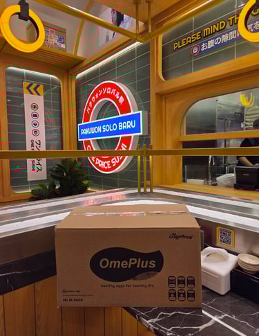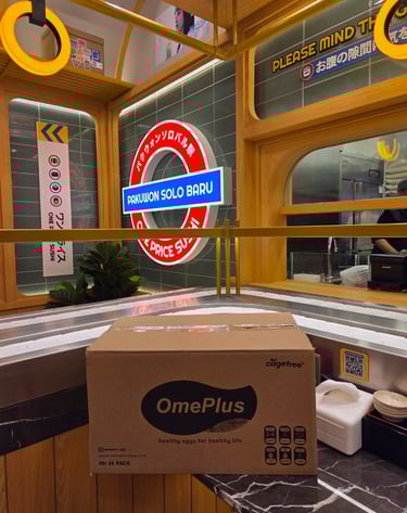 “Sebelum kenal omeplus kita pakai telur biasa untuk menu kami hasilnya kurang menarik,tetapi setelah kita menggunakan omeplus rasa dan warna masakan telurnya jadi lebih bagus."